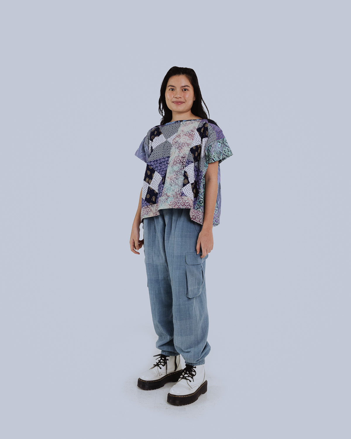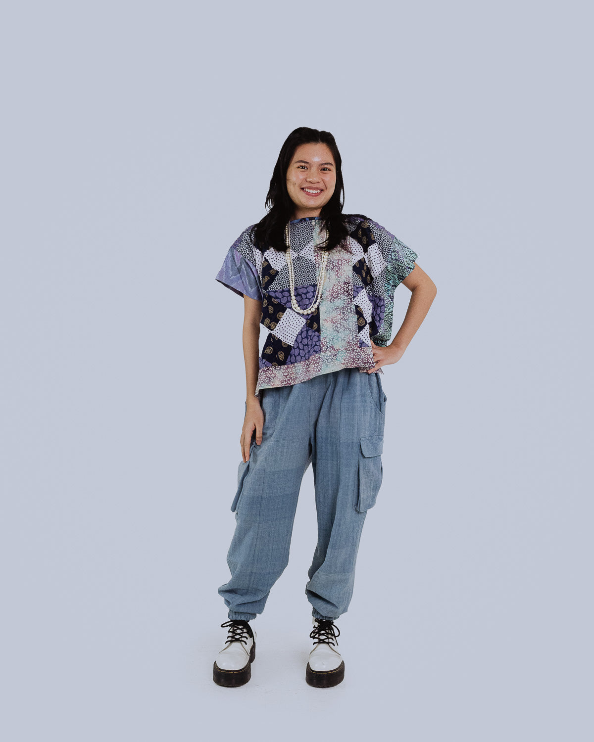 Every piece incorporates upcycled patchwork by Hudha of Daughters Of Tomorrow, utilising discards from local fashion businesses, as well as collected offcuts, vintage, secondhand and deadstock material.